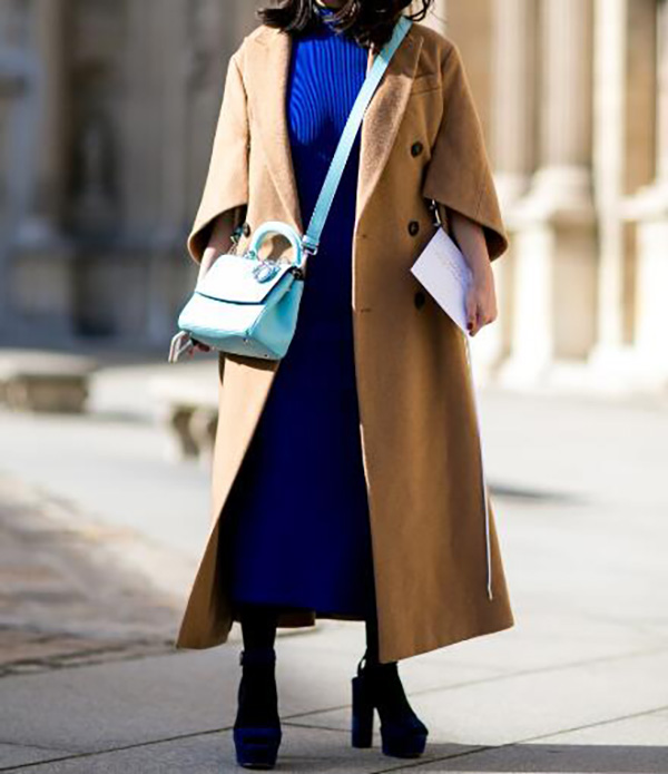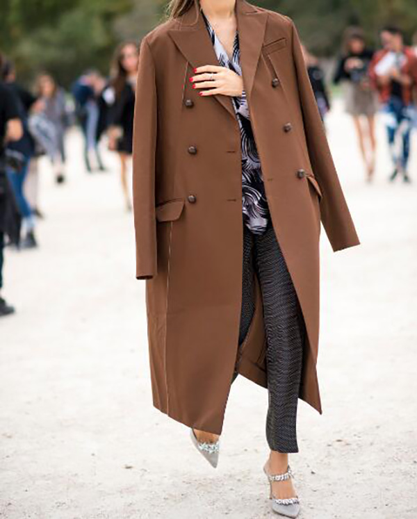 显气质的中长款西装领呢子大衣,只要简搭一件卡其色连衣裙和高筒靴就极显魅力,彰显优雅大方的气质。