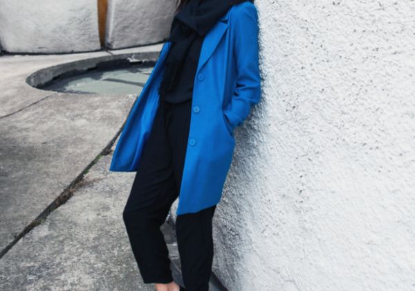 蓝色大衣+黑色打底