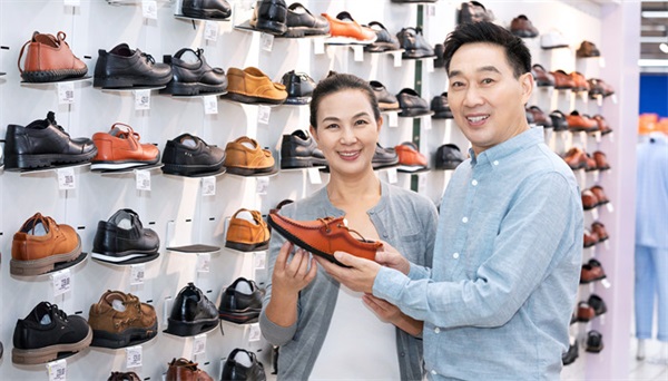 鞋子在选购时应站着试穿,因为站立时脚部会比坐着时略微大一点。试穿时不能只穿进去对着镜子看一下就买,一定要来回走几步,细心感觉鞋的稳定性与大小是否合适。