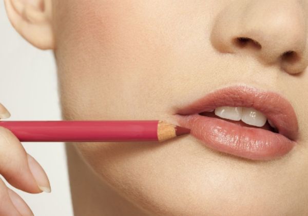 第二步 用唇线笔描画出唇部的轮廓,如果不需要突出嘴唇或者想要自然的效果可以不用画。