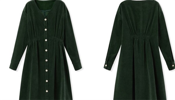 灯芯绒长款连衣裙相当保暖,适合内搭高领或是半高领的针织衫,其外搭配西装外套最适合了。在选择西装外套时,无论是短款西装外套,还是中长款及臀的西装外套,都可以打造出不同的时尚风格。