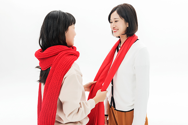 将围巾绕两圈再打结,是韩剧中的女主角们最常佩戴的方式,不仅密不透风最保暖,而且特别显脸小,这样的系法既不妨碍活动,也不用怕大风把围巾刮飞,实用性还是比较强。但如果是太大的围巾,我就不建议选择这类系法啦!因为很容易会显得累赘。