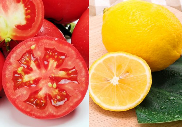 番茄面膜:将番茄和柠檬打成泥,与适量的面粉相混合,涂在脸上约30分钟,可去除脸上老化死皮,收敛毛孔,对付油性皮肤和黑头粉刺有非常好的疗效。