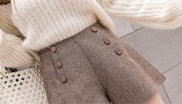 毛呢短裤可以搭配宽松的毛衣、针织开衫或是V领镂空毛线衣,可以打造出秋冬季节兼备温度与风度的时尚装扮。在选择这种搭配时,要注意整体搭配上的和谐性。