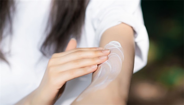 (3)用指尖将各个部位的防晒霜轻轻涂匀