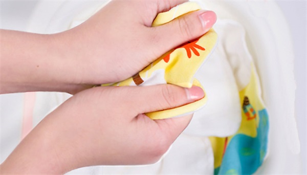 汗巾是用来隔离衣服和身体肌肤的,它可以防止汗水浸湿衣物,常用来给宝宝隔离背上的汗水。使用的时候,先将汗巾展开放在自己的右手上,然后用左手轻轻掀开宝宝的内衣领,再让右手带动汗巾由上往下轻轻的塞,最后将汗巾整理平整就可以了。