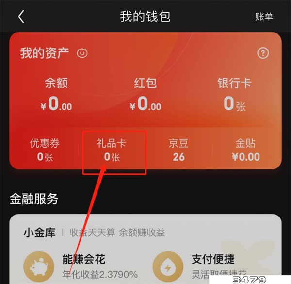4、在【我的钱包】页面,点击进入【礼品卡】页面;