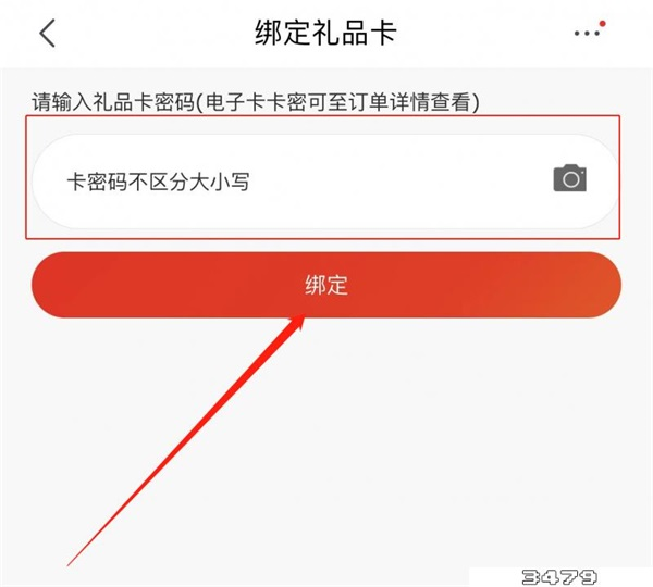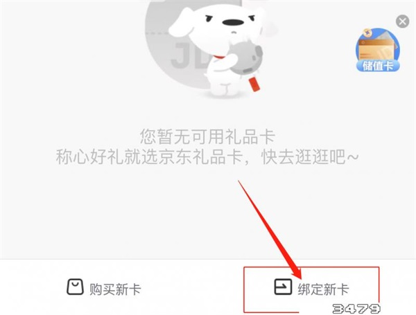 5、在【礼品卡】功能页底端,有两个选项,分别是:购买新卡和绑定新卡。选择【绑定新卡】功能,点击进入;