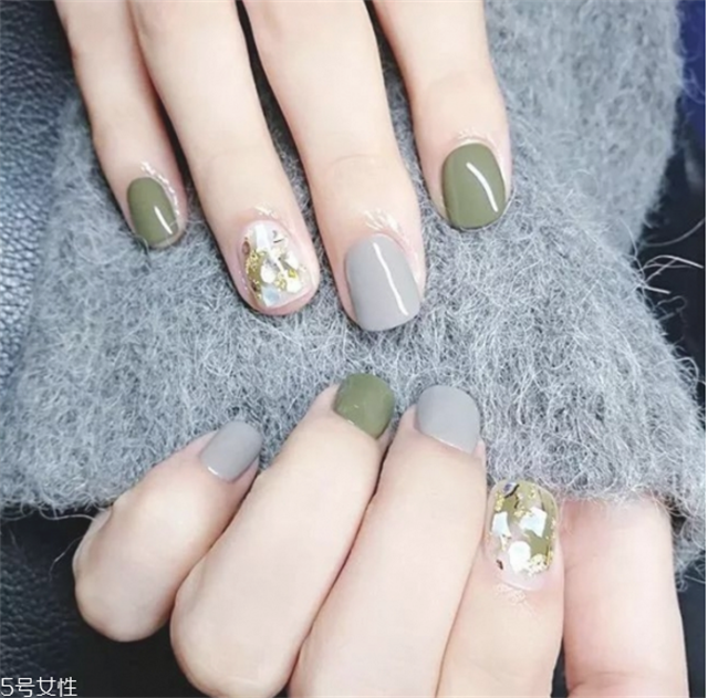 短指甲非常适用的一款晕染美甲,添加了金箔及银箔元素,秋冬适用。