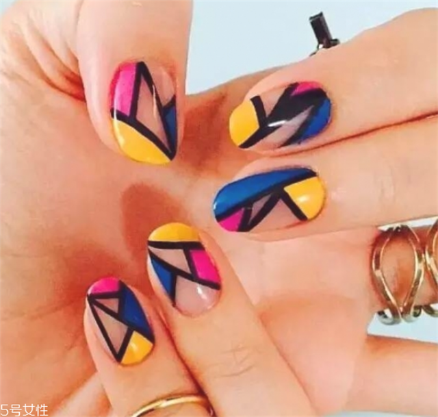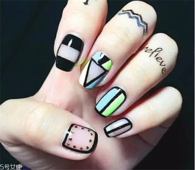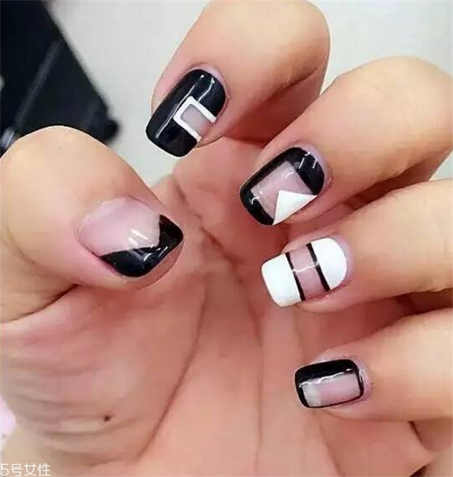 菱形,方形,三角形都是最基础最简单的图案,以往大家都爱夸张的日系美甲,如今韩式简约风已经席卷亚洲了。只画几何图案就太没新意了,做成镂空款,瞬间就前卫时髦多了!