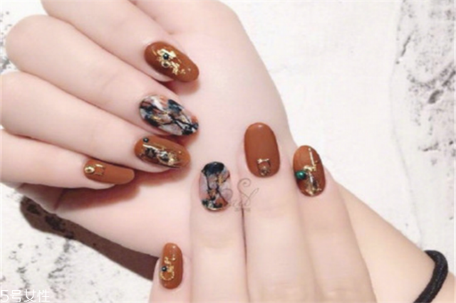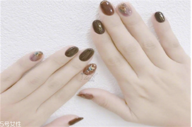 红棕色是今年非常流行的美甲色,非常显白,不管怎么搭配都会很好看。