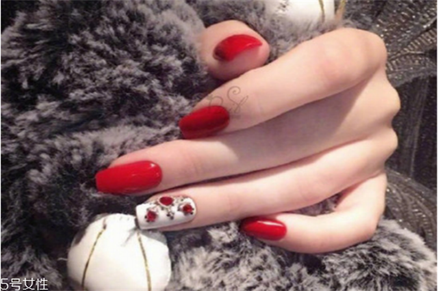 红色美甲是真的好看,时尚大气更显手白,稍稍设计一下整个美甲都不错,而且颜色还显手白。