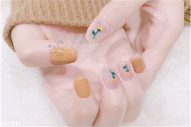 这种橙色系美甲也好看,加入跳色设计确实很有时尚感,还可以给人一种撞色的感觉,挺显美范儿。