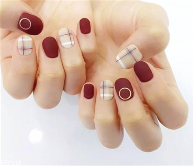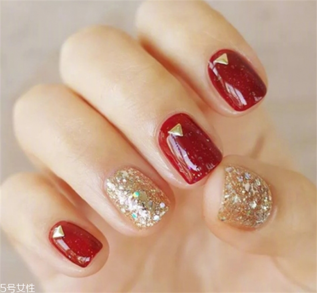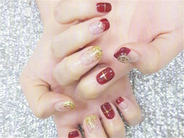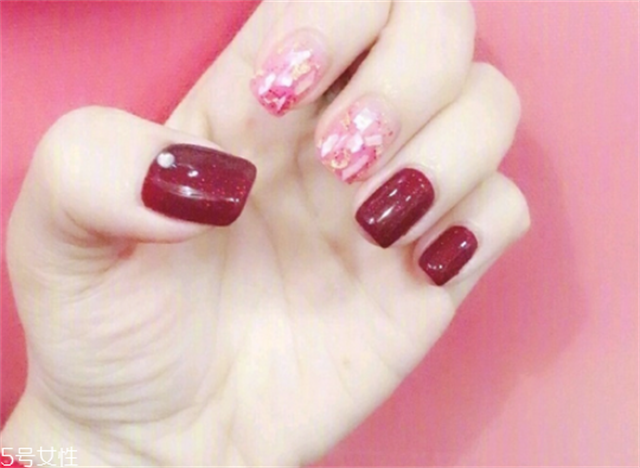 2018流行美甲中一定少不了这款酒红色美甲,颜色大气又时尚,加入跳色设计更具时髦感,上手效果也会更棒。