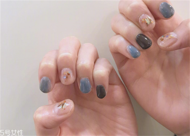 深蓝色系美甲还是相当好看,像这样跳色设计一下还是可以的,简单又时尚显气质。