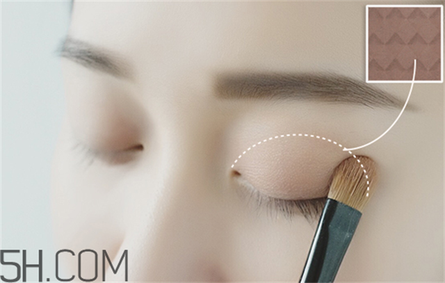 为了打造一种睡眼惺忪的眼妆感觉,这次的眼影层次特别自然,浅棕+深棕的过渡就好了!先用浅棕色给整个上眼皮上色!