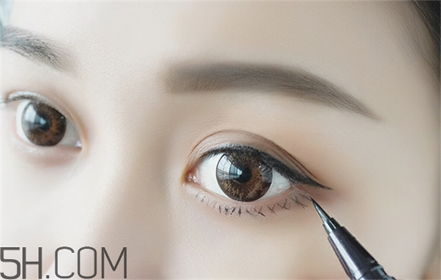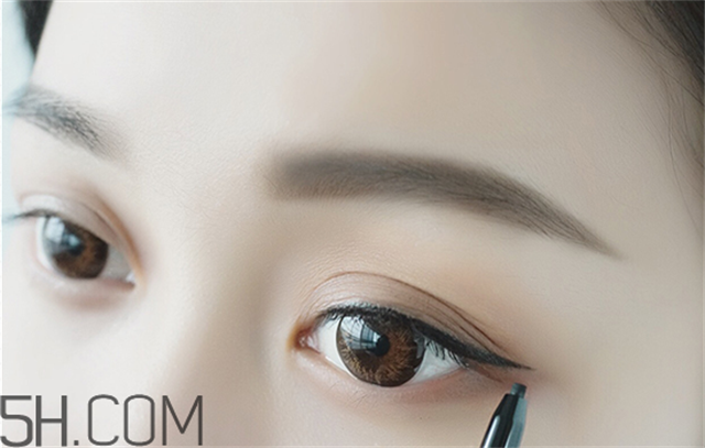 最后用防晕染的眼线胶笔画出内眼线,轻微拉长眼尾让眼睛看起来更加细长。如果本身眼睛比较长的妹子可以不用拉这么长的眼尾哦~
