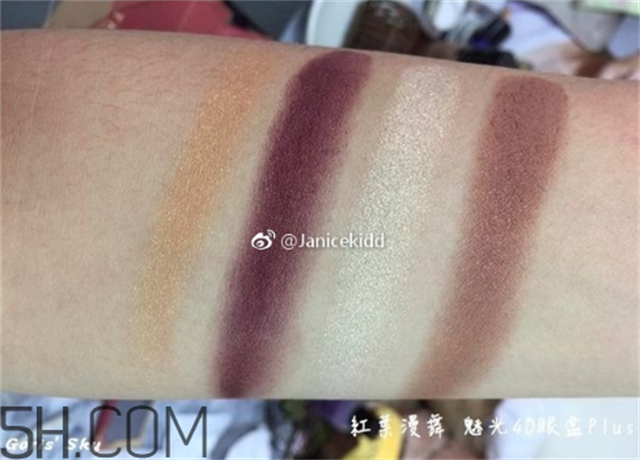 魅光4D眼盒Plus的色调是在枫红、拾穗然后丰饶的生命意象颜色中的层次变化,甚至都还有些蓝调,同时撒上秋阳般的光晕色彩,右上角是魅光4D眼盒Plus一贯的霜状色,也是主要的眼影深邃打底色,有些蓝调,同时芳醇酒红色般的枫叶紫,再透过各种秋阳般的细致光晕的穿透,澄净出丰饶般的拾穗金**彩。