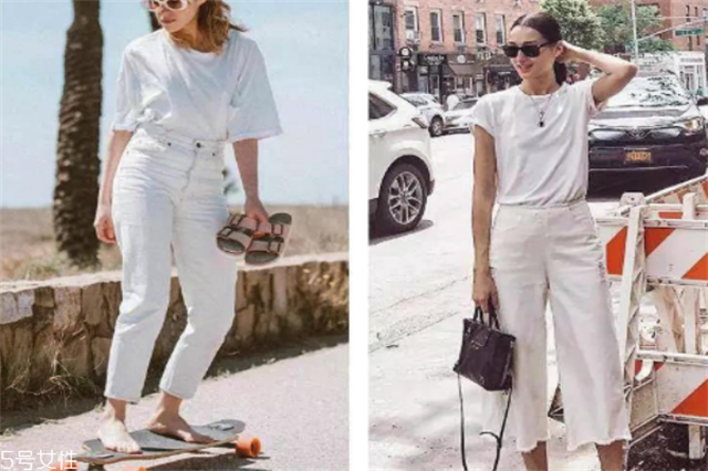 白色牛仔裤:白色,很清爽的颜色,夏末秋初,这样将变未变的气候就适合来一件白色牛仔裤。搭配白T,简单利落的出街造型也带着随性自在的仙气。气温高的时候,搭配小吊带,这种简单的样子就很舒服。