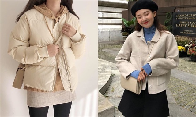 比起前几年流行的长版外套,今年更流行的是短版外套,像是短版大衣、短版羽绒外套等,长度不要超过臀部,好处是看起来腿会更长,对于小只女来说更显比例。