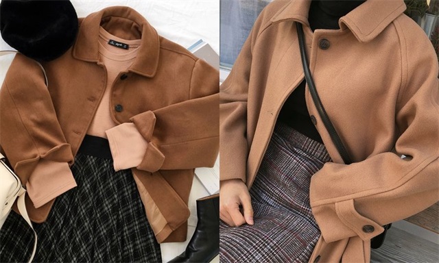 冬季最经典的颜色莫过于驼色,而一件驼色大衣自然也是经典又百搭。不过肤色过于蜡黄的妹子切记要选浅驼色,浅浅的驼色偏亮,饱和度不会太高,这样也不会衬得皮肤更加泛黄,效果会比深驼色好一百倍。