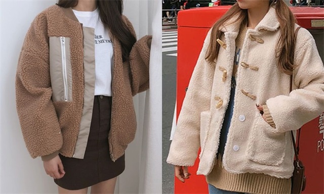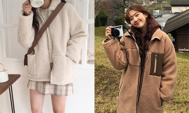 比起女星那种长泰迪熊外套,小编更推荐这种短版的泰迪熊外套,内搭尽量以素色、或是洋装为主,保暖时尚又不显胖!