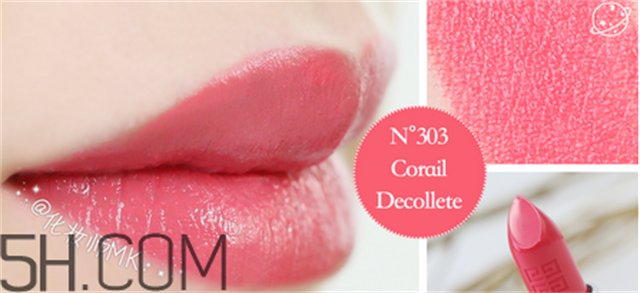今年的刷屏王西柚色,其实就是粉橘色啦,跟302不同的是,303偏橘色,更加活泼也更加显白。加一层透明唇彩的话,就是思密达妹砸很爱的果汁唇了。