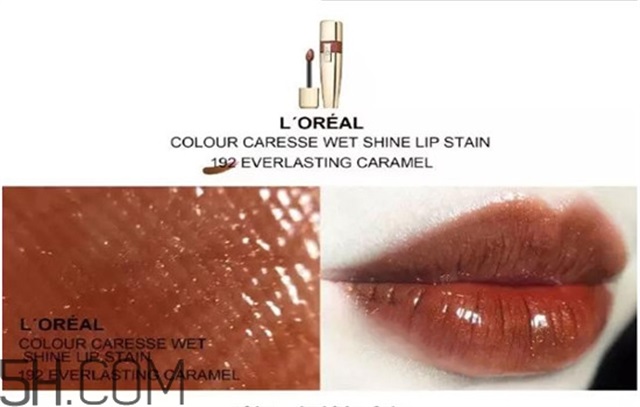 红棕色,带金色细闪,非常秋冬的颜色,刚上唇橘调会比较重,但是颜色会慢慢的变红变深。质地相对比欧莱雅192#来说,比较好涂匀,可以打造玻璃唇的效果,虽然持久力不好,但是总体来说性价比高。