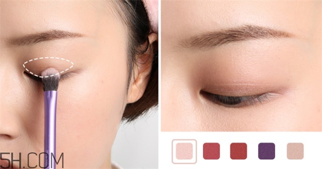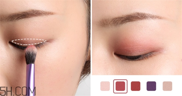 第二步用右上角的玫粉色铺满双眼皮的褶皱处~