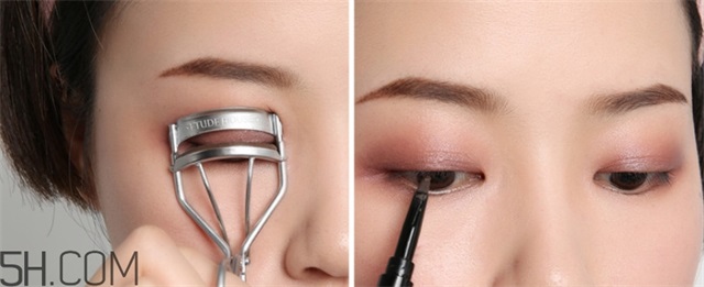 夹翘睫毛后,用眼线膏填充内眼线。眼尾可以根据自己眼型适当拉长一些。