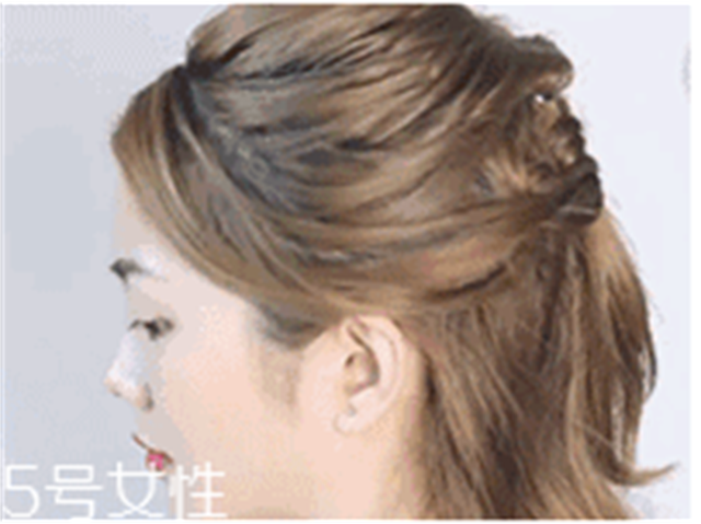 Step 4:用梳子的末端把头顶的头发挑起来,弄得蓬松一点。