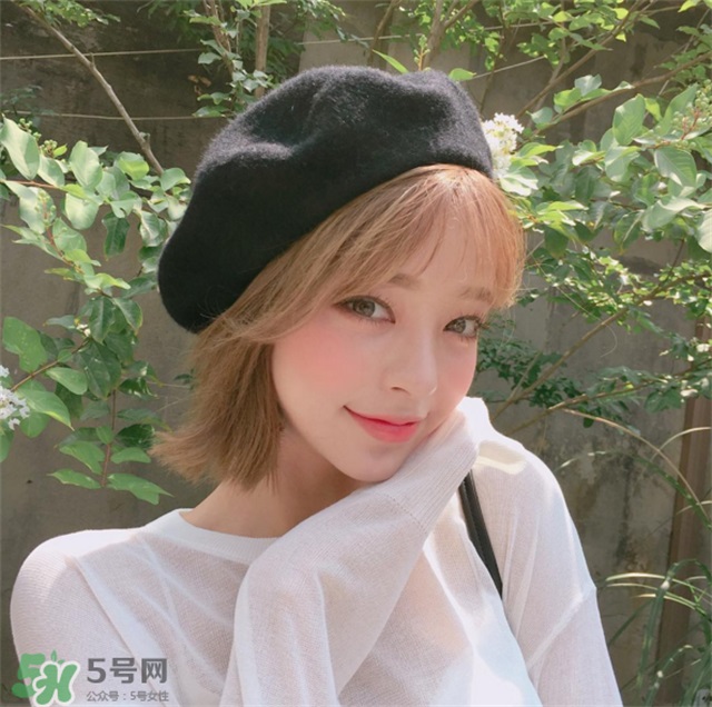 图四:发色浅米黄色 帽子造型~空气刘海~