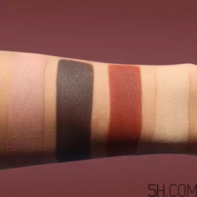 但是今天要说的这盘“枫叶盘”来自kvd的四色哑光眼影盘,俗称“小棺材”眼影。Rust的配色是近年一直比较流行的砖色、综红色系,而且粉质完全不输上面提到的大盘。