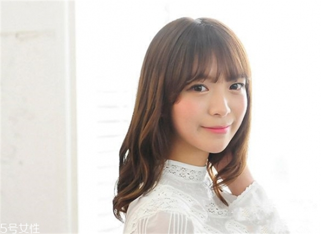 内扣中发搭配齐刘海,显得女生特别的清秀和有气质,齐刘海恰好及眉,露出眉眼,披在两边的头发很好地修瘦了脸型,也适合宽脸的MM。