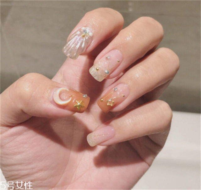 BlingBling的美甲款式,下面这些指甲款式无论是日常、出去玩、旅游、婚礼都很适合,主要用到的一些:玻璃纸、贝壳、金线、金箔、珍珠、贴纸、星月、猫眼石。个人建议做这些款式的话光疗是最好的哦。记得跟美甲师说尽量做薄一点,有小仙女跟我讲过可能会有点厚。