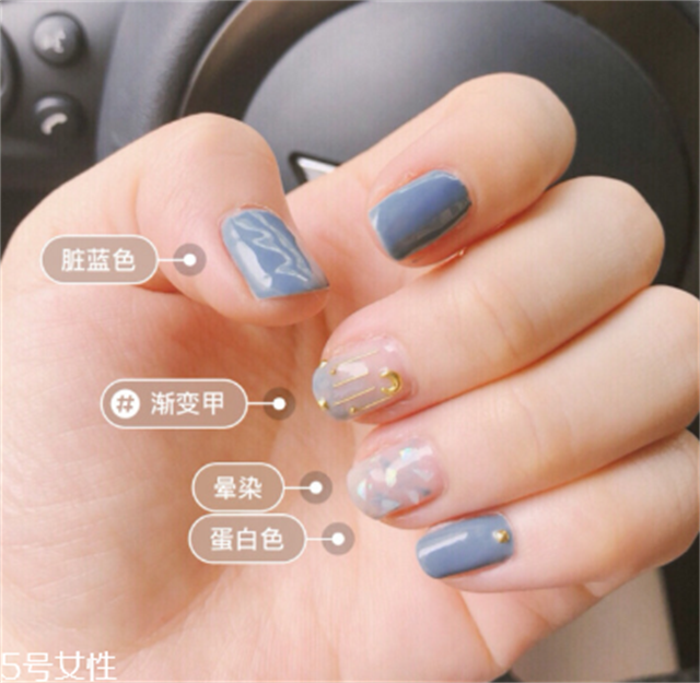 1、玻璃元素美甲:玻璃美甲总会给人一种酷酷的印象,它就像玻璃纸一样,能够很好的反射出光芒来,总能将人们的心很好的抓住,所以很多妹纸也更爱玻璃美甲,blingbling的闪耀特质,真的是足够吸睛的。