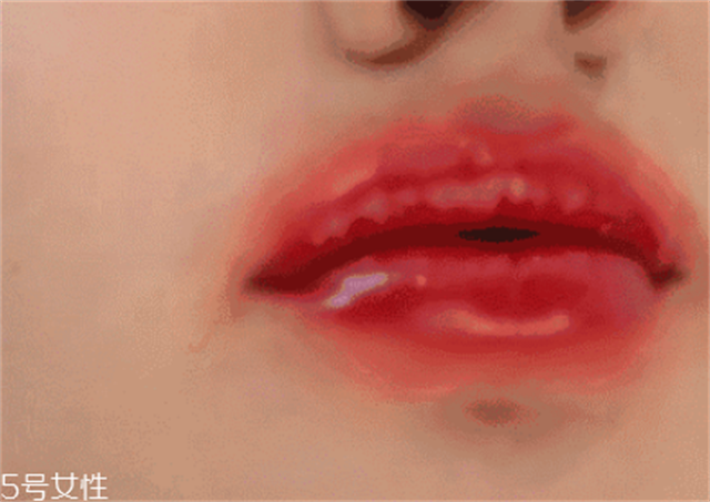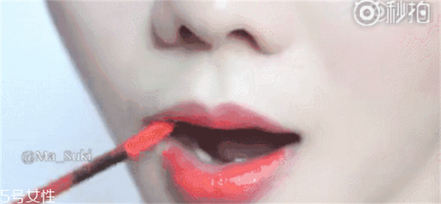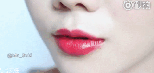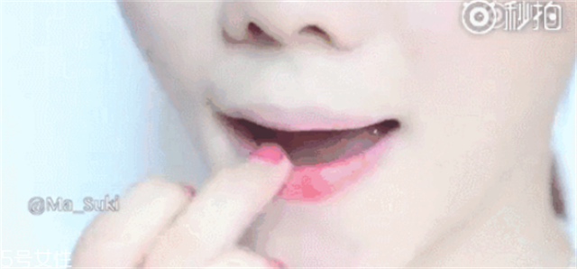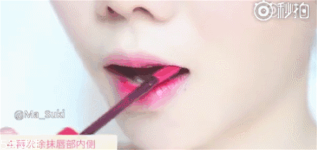 染唇妆:嘴唇看起来比较圆润看起来比较嘟嘟的。画法上跟咬唇妆正好相反。