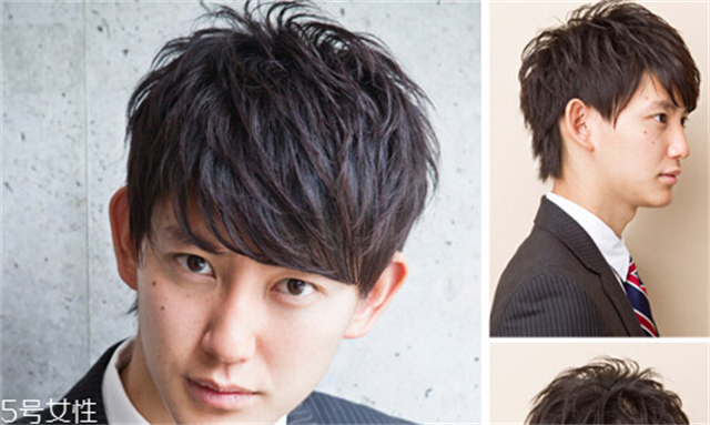 这款发型有几分复古感,同时又有奶油小生的气息,侧分刘海露出额头很帅气,头发长度及耳,稍稍抓松的发丝,让这款发型更显韩范,而且也非常的好打理。