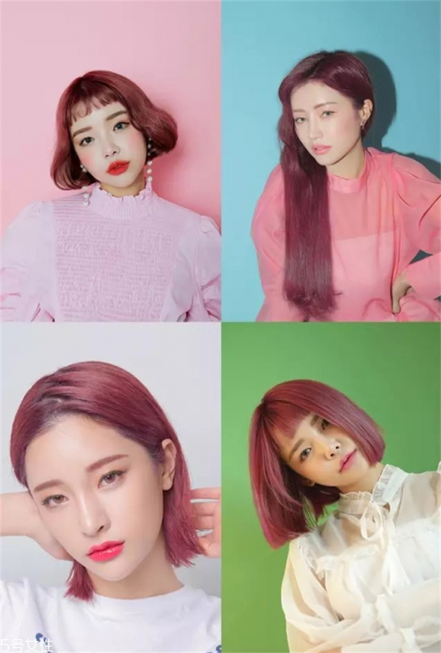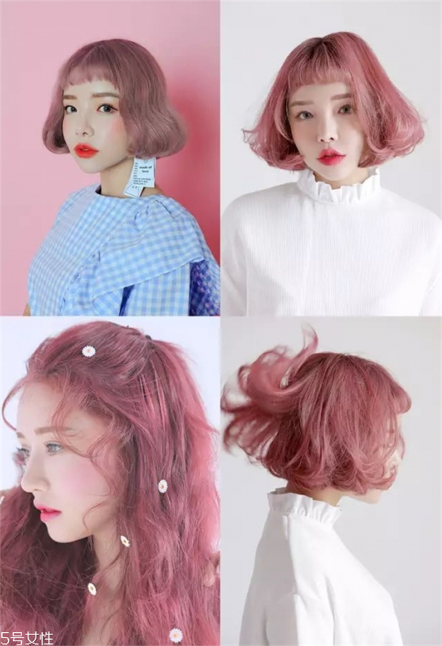 这种雾粉色是很适合夏天,但是却不是每个人都能hold得住的发色,很多年轻的女生染这个发色,看起来特别的显个性时髦,也很显肤色白和好看,但是有一个缺点就是新头发长出来之后,就会显得很突兀不好看。