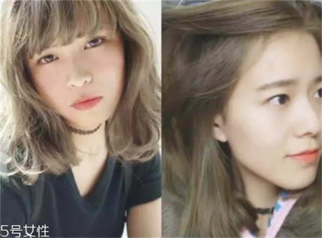 下图的两款发色颜色都特别浅。下图左边是浅金棕色,下图右边是烟青色。两款发色都是很显白、减龄的颜色。下图的照片搭配的也是春夏季穿的服装,无论是搭配上浅金棕发色还是烟青色发色,都是美的。