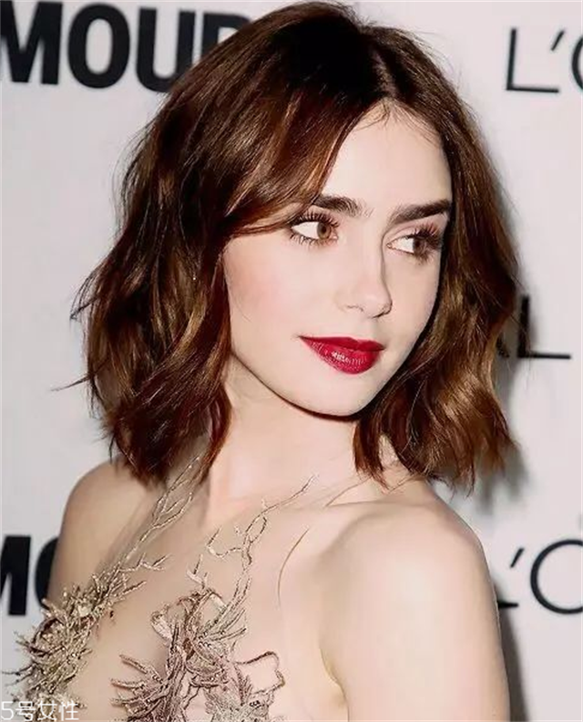 巧克力色不是什么新鲜的发色了,却依然颇受欢迎。因为它兼具奢华的质感和百搭的气质!Lily Collins这款巧克力色蛋卷bobo头,即复古摩登又灵动俏皮,十分养眼。时髦却又低调的发色,很多姑娘都适合。