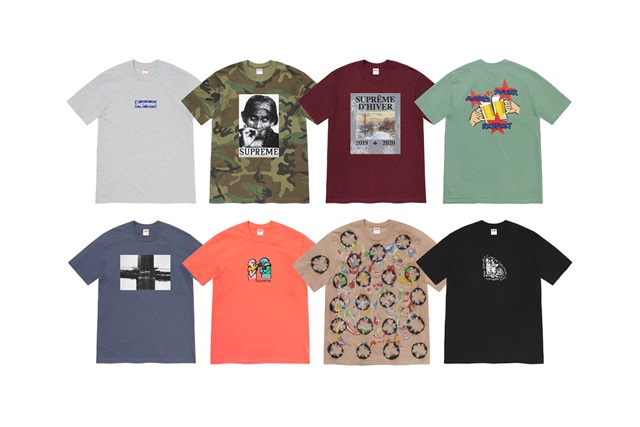 在上周 Supreme 带来令一众潮人都争个你死我活的 Bandana Box Logo 连帽卫衣后,大家都以为市场上将会变回平静。然而今周 Supreme 仍留有后着,便是带来冬季 T-Shirt 限定系列,当中将一口气推出八个款式,除因应圣诞节而来的别注 T-Shirt 之外,更将以 Bandana Box Logo 炮制 T-Shirt 单品,让大家即使未必能以极高转售价钱入手 Bandana Box Logo 连帽卫衣,也可以退而求其次用较便宜一点的价钱购买 T-Shirt。其余的 T-Shirt 款式还包括八十年代纽约涂鸦二人组 Sane **ith 的作品,「Supreme D’Hiver」,喷笔风格的小丑样貌,抽烟的老妇人等,有关 Supreme 2019 冬季 T-Shirt 限定系列将于本周 12 月 19 日开始在纽约、洛杉矶、三藩市及欧洲门店及线上店舖发售,随后于 12 月 21 日登陆日本及线上店舖。