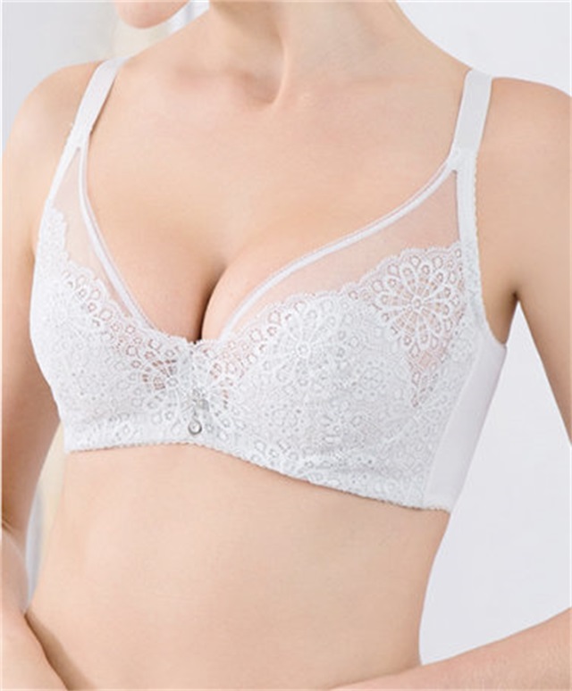45/8罩杯 介于1/2罩杯和3/4杯之间,适合胸部小巧玲珑的女孩,因为前中收止的位置正好在**最丰满的地方,因此会令胸部更显丰满。5/8罩杯又分为偏1/2杯和偏3/4杯两种。前者由于杯边呈一字型,对**上部的丰满度要求更高,较适合胸部为B杯或C杯的丰满女性,后者的前幅变呈现斜角,心位较低,丰满人群易发生压胸现象,因此更适合A杯或B杯女性。
