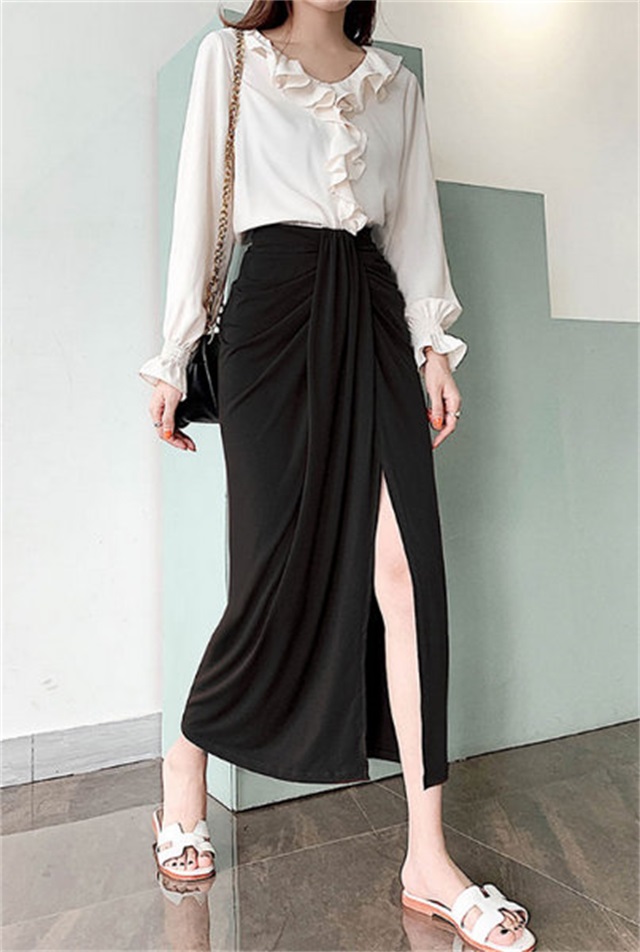 1、开衩包臀半身裙有前、中、后三种开叉方式,如果包臀半身裙中线开衩,那么开衩的那一面就是“后”面。若标签一面没有开衩,那就说明开衩在旁边或者前面。