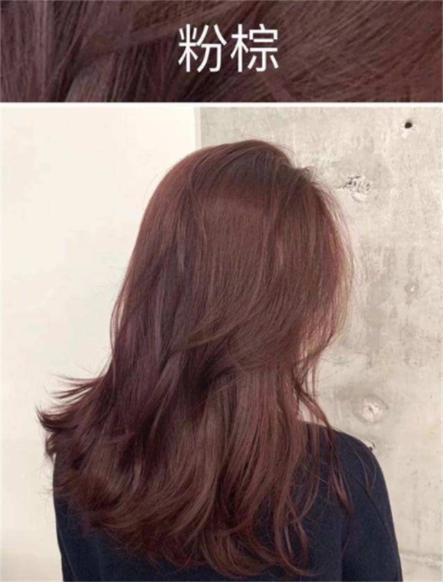 粉棕色是近几年非常流行的颜色,非常显白的一个颜色,显得整个人非常有气色和有活力的一个颜色。粉棕发色,无论是什么肤色的女生,染上这个颜色都会很显肤白。当然,如果原本就是白皮肤的女生,那么染上就更白了。
