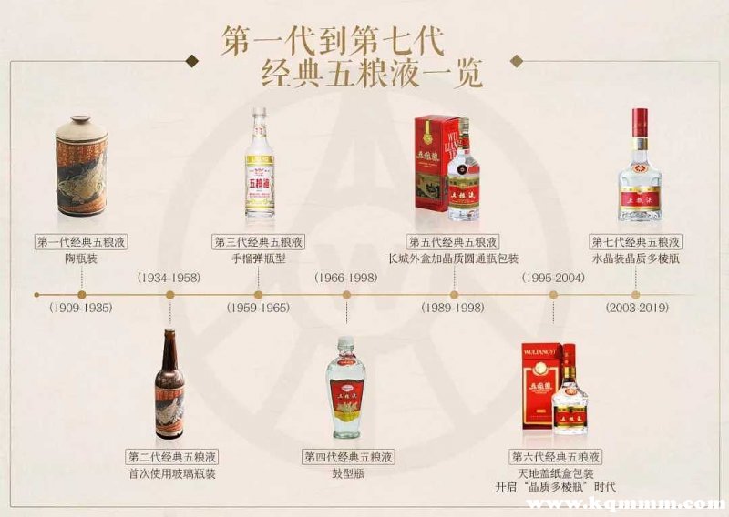 五粮液1代至8代主要通过包装来区分,每一代的包装会有所不同。具体如图所示: