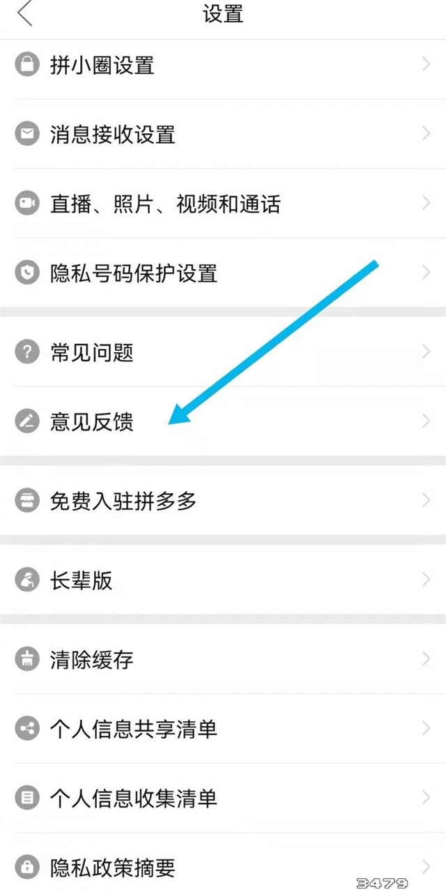 2、找到【设置】,进入页面后找到并点击【意见反馈】;