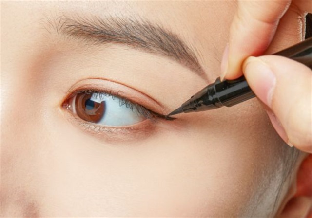 选择与眼皮肤色相似的颜色进行眼窝打底,然后再刷上主色调,并用棉签擦拭调整其色度从下到上逐渐变淡,在睫毛根部往上2-3毫米区域刷上深色调,其色度从下到上逐渐变淡。再用黑色眼线笔画眼线,眼尾拉长,最后在黑色眼线上覆盖一层深色眼影,让眼线融入到整个眼影中。