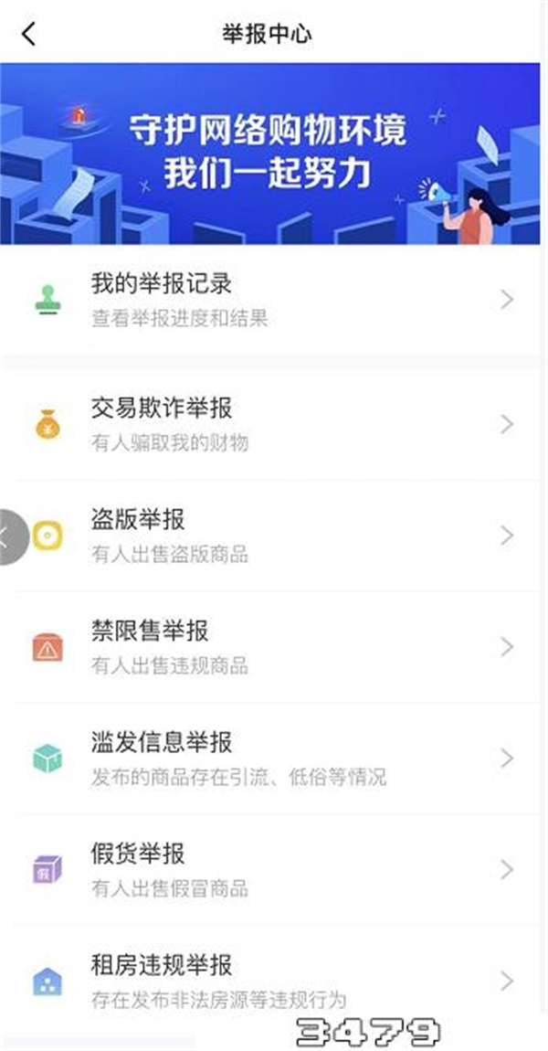 5、进入【举报中心】,根据页面提示选择相对应的举报原因即可。
