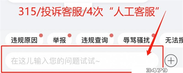 3、注意我们要找的是人工客服,因此可以通过在对话框输入【315】/【投诉客服】/四次【人工客服】/在淘宝上召唤人工转接闲鱼人工;
